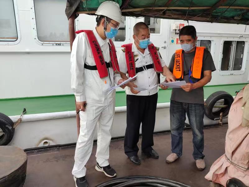 为做好辖区水域环境?;ず痛鞍踩ぷ鳎涨?,南宁船舶检验中心与南宁海事局横州市海事处联合开展水上加油船检查,专项整治船舶油污排放、设施设备、安全生产工作情况。