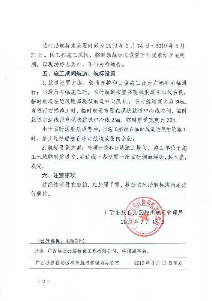 关于融水县水东新区污水收集管网工程DN500污水压力过江管道工程施工期间临时助航标志设置的航道通告