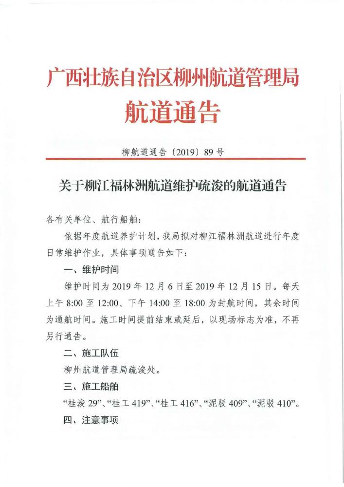 关于柳江福林洲航道维护疏浚的航道通告