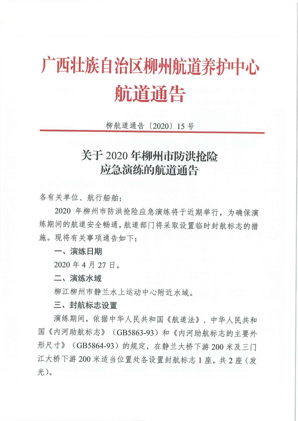 关于2020年柳州市防洪抢险应急演练的航道通告