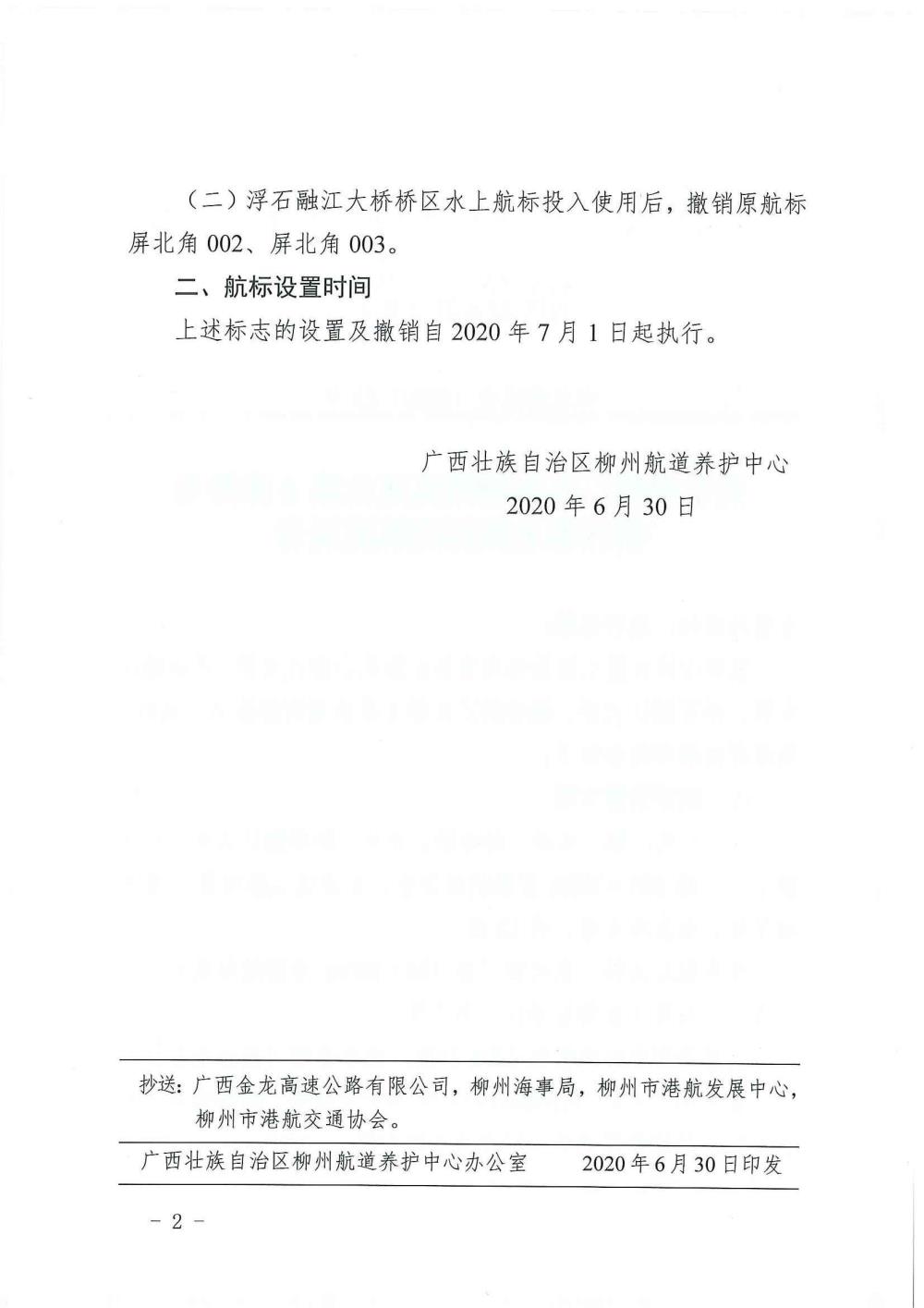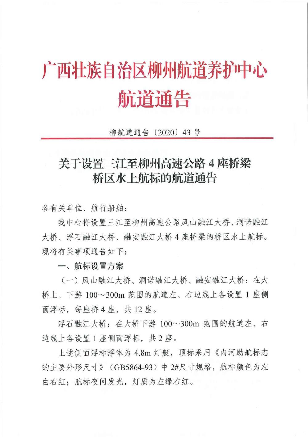 关于设置三江至柳州高速公路4座桥梁桥区水上航标的航道通告