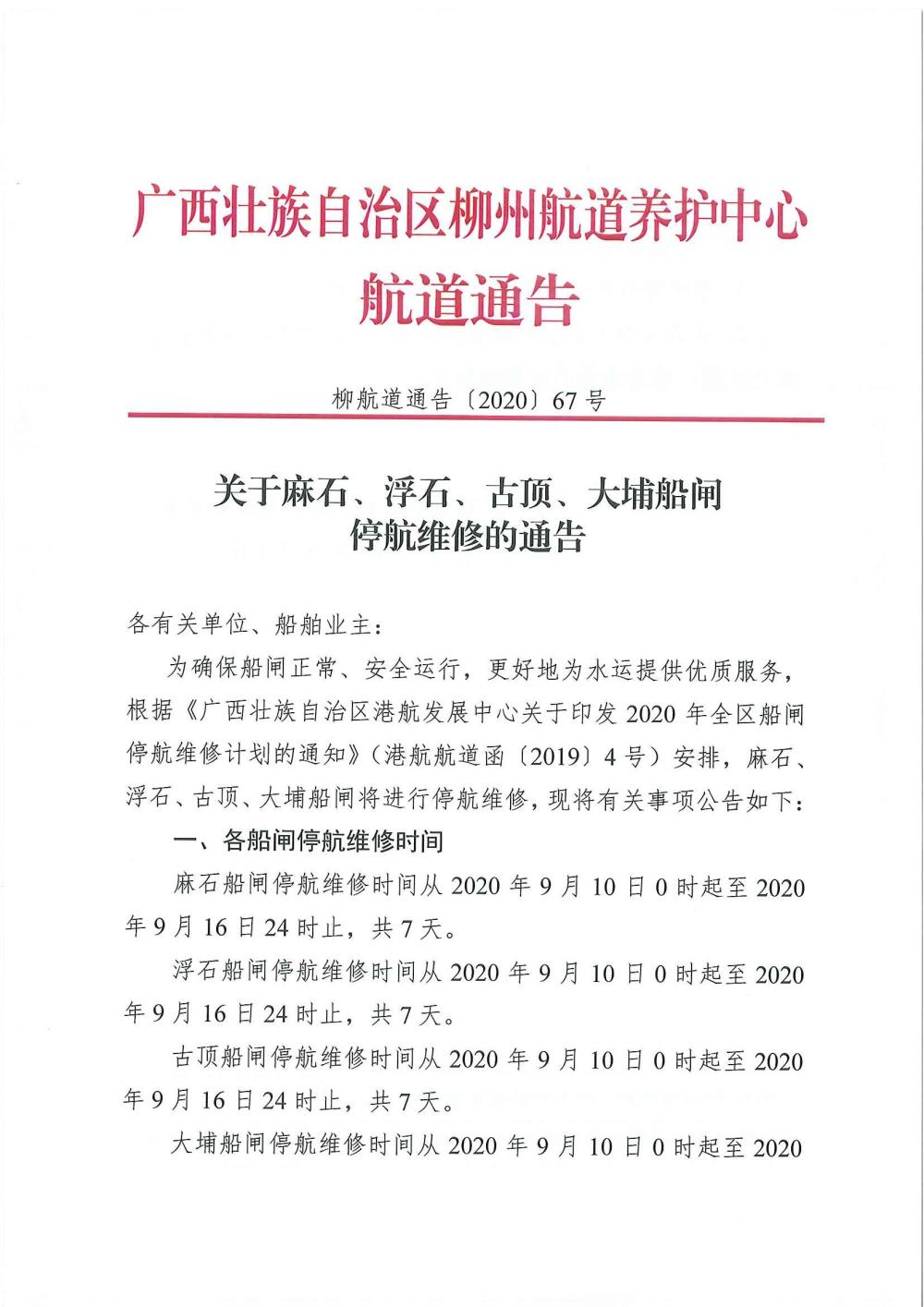 关于麻石、浮石、古顶、大埔船闸停航维修的通告