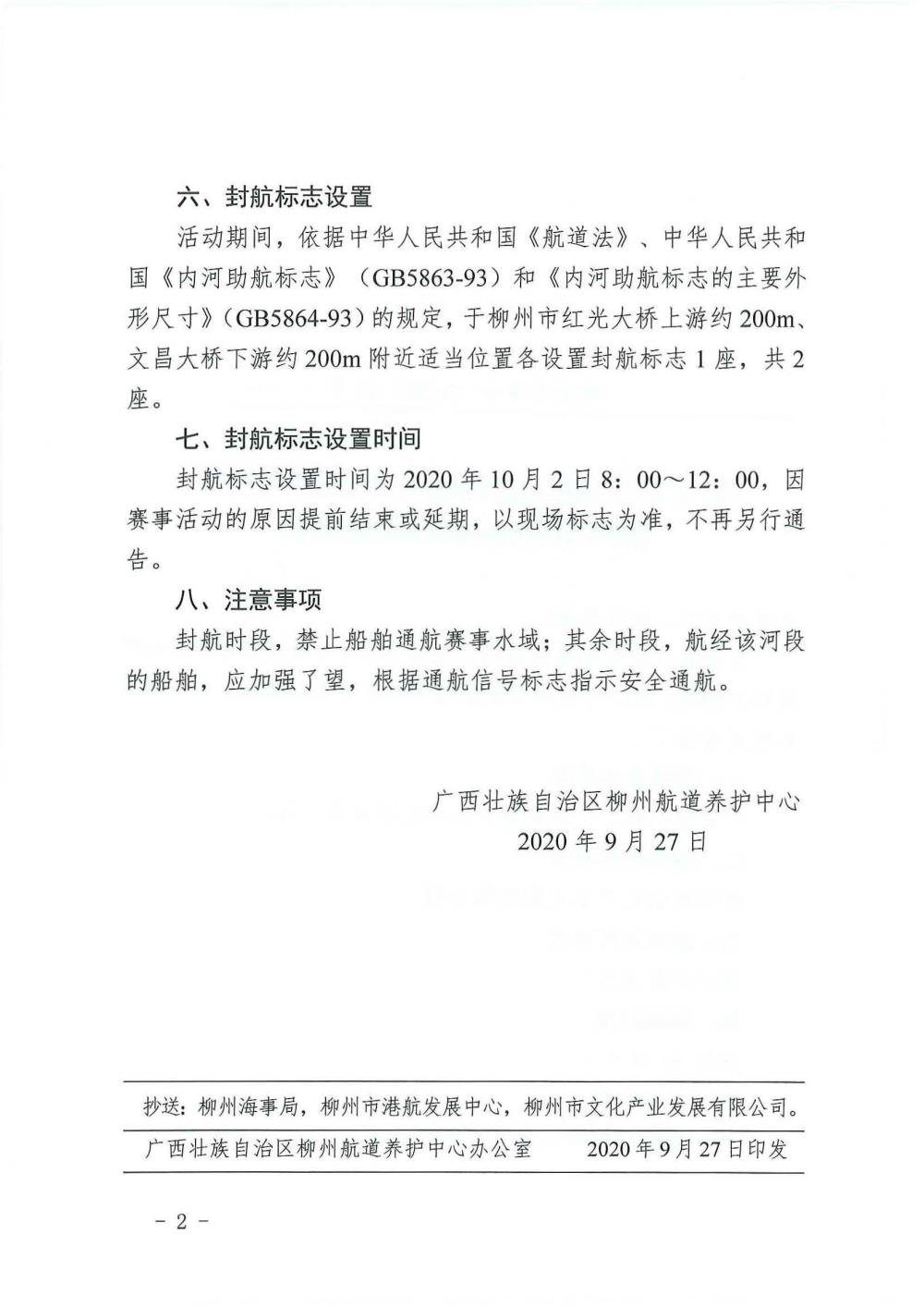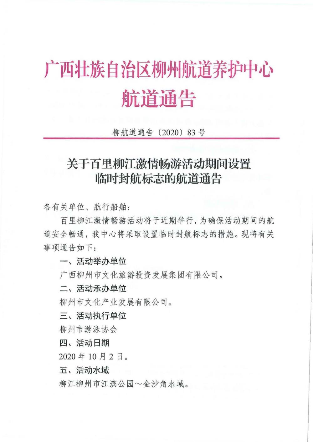关于百里柳江激情畅游设置临时封航标志的航道通告