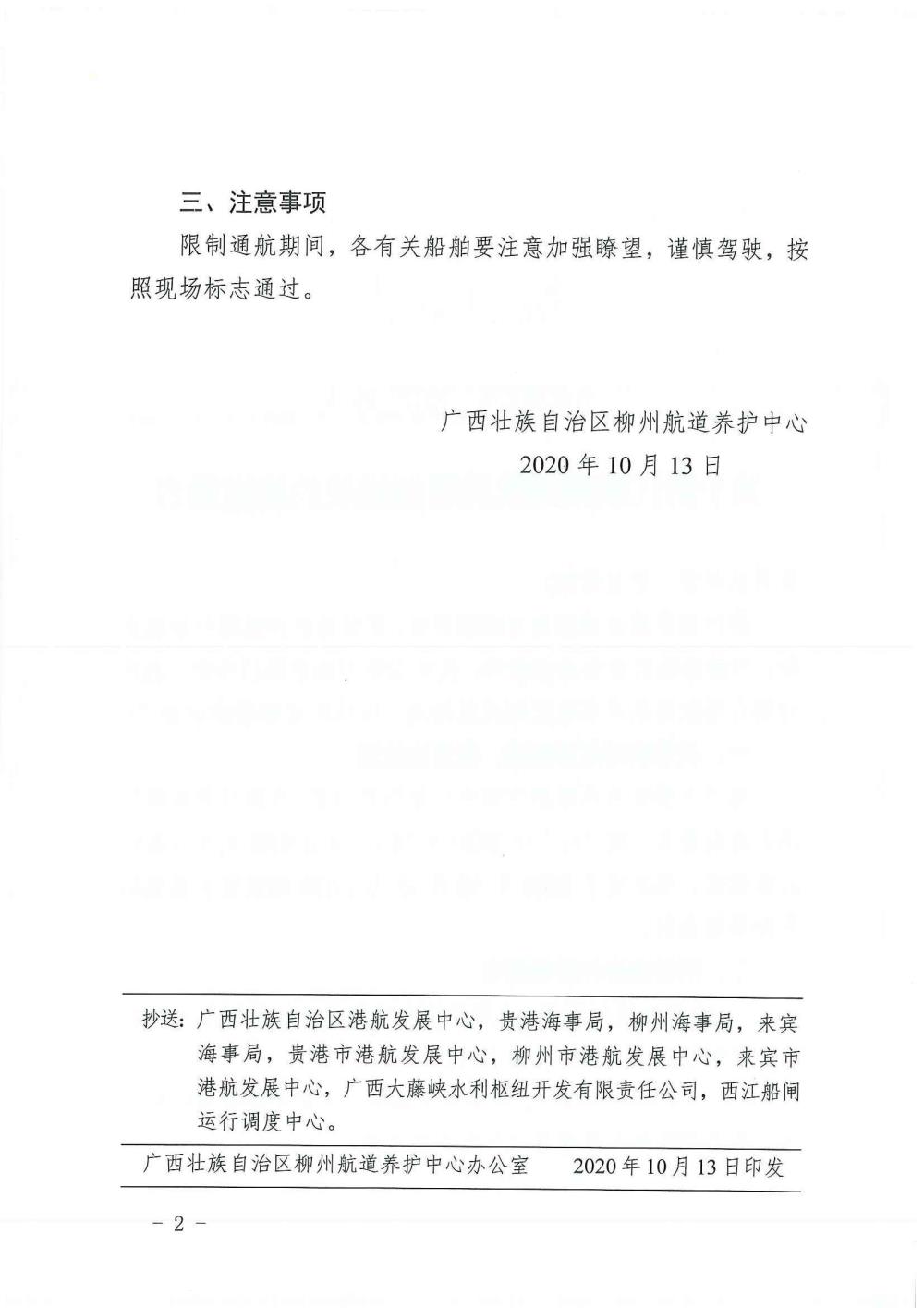 关于黔江铜鼓滩航段限制通航的航道通告