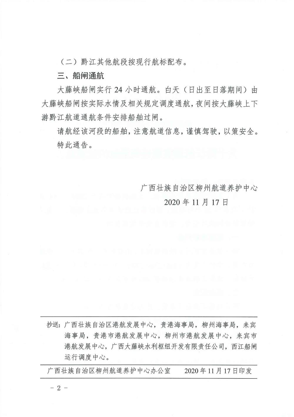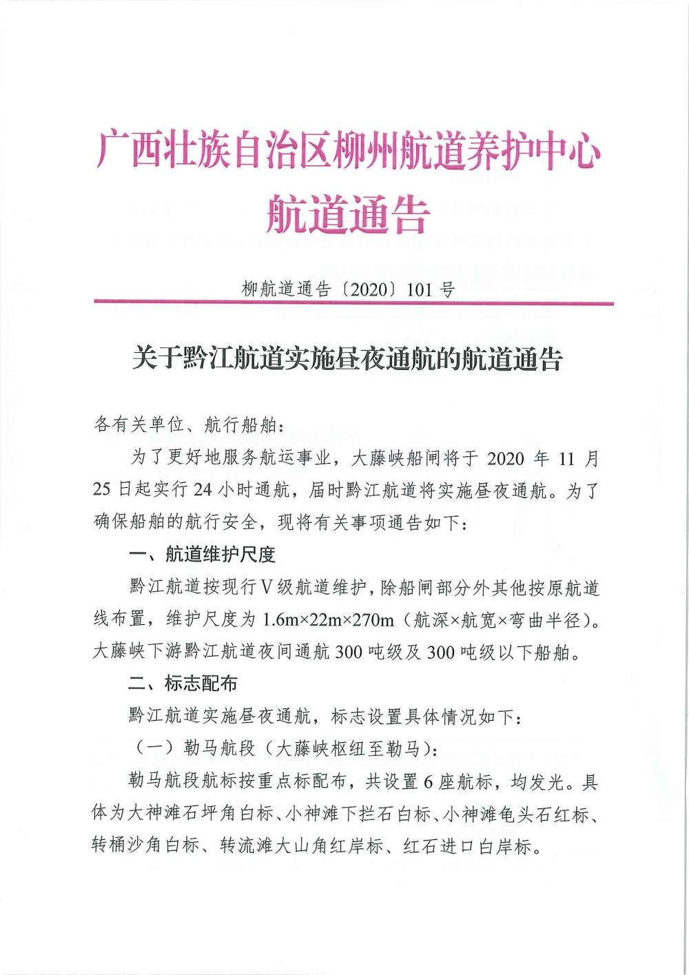 关于黔江航道实施昼夜通航的航道通告
