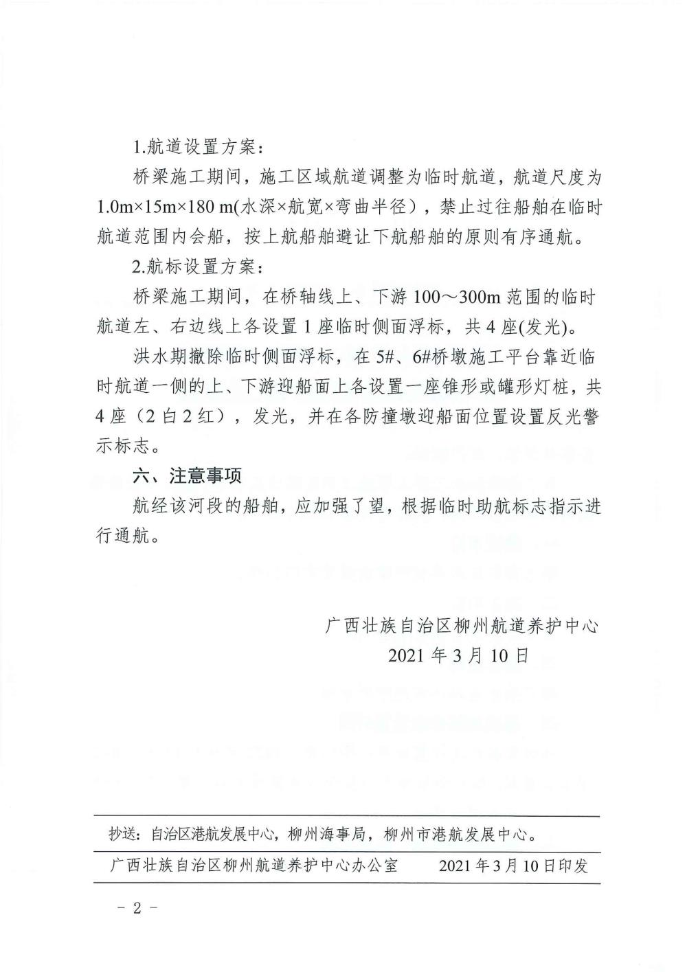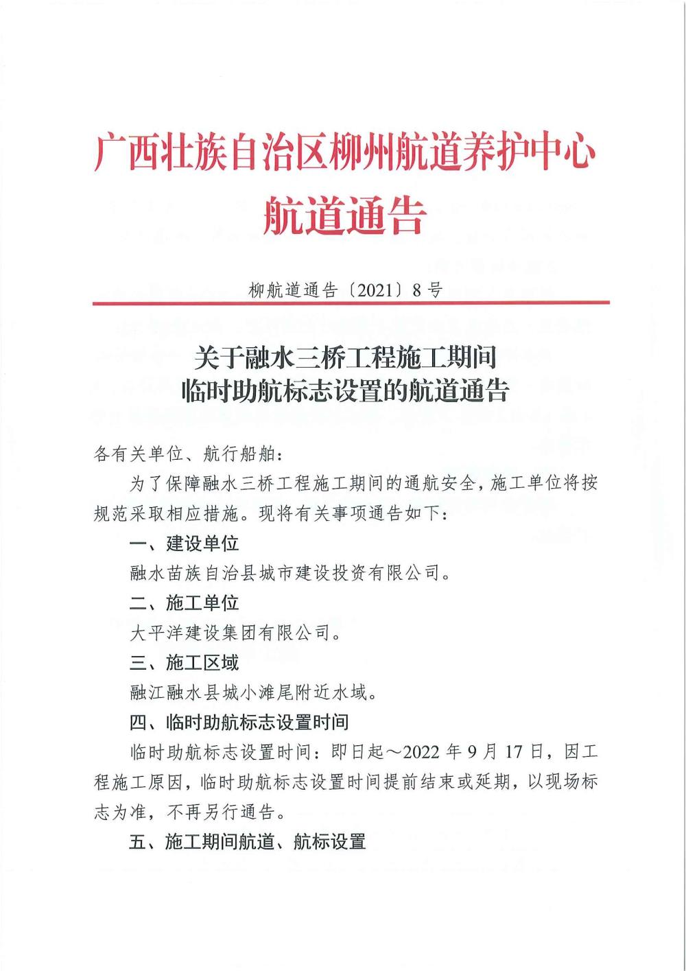 关于融水三桥工程施工期间临时助航标志设置的航道通告