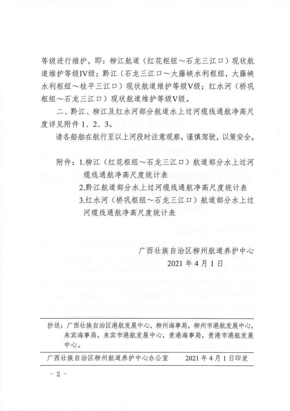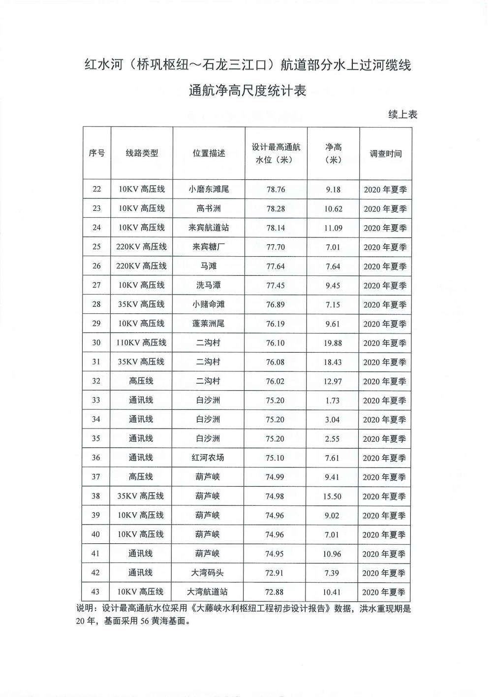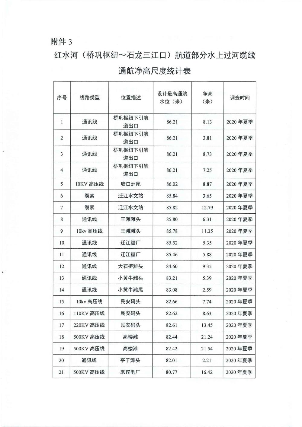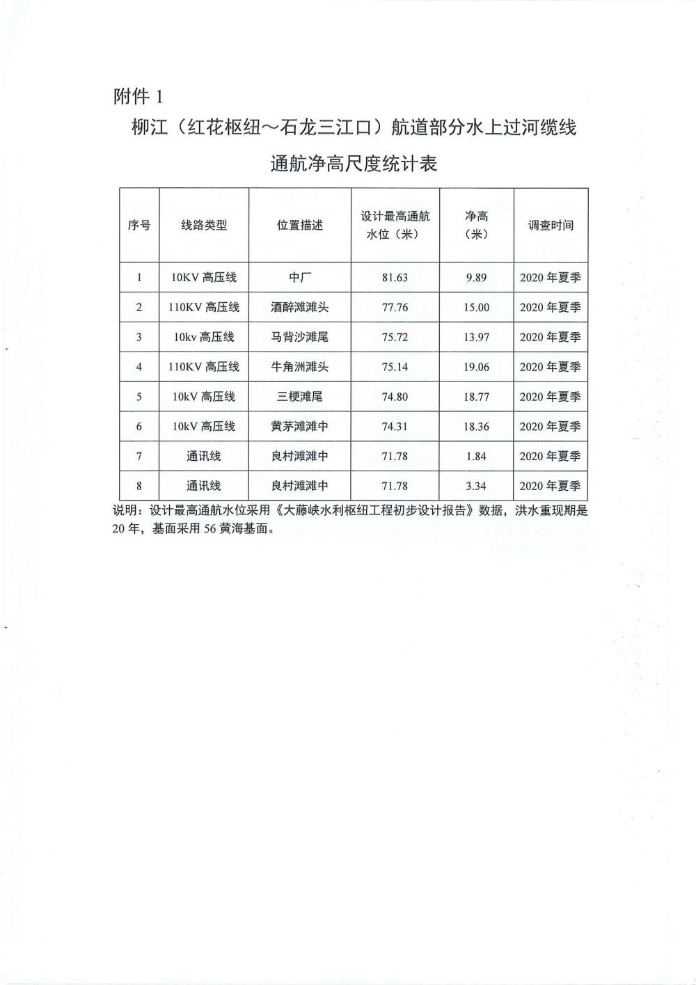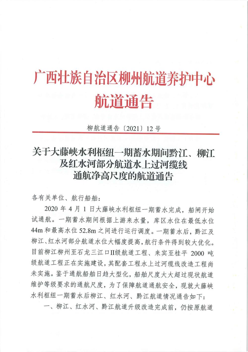 关于大藤峡水利枢纽一期蓄水期间黔江、柳江及红水河部分航道水上过河缆线通航净高尺度的航道通告