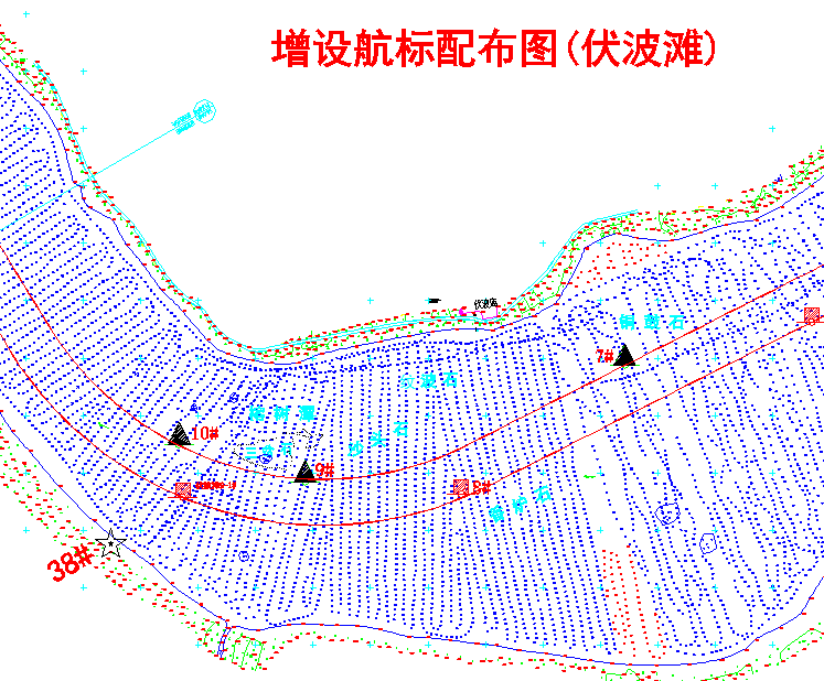 4、在地伏滩三拐石航道右侧边线处增设临时罐形(红色)侧面浮标一座。