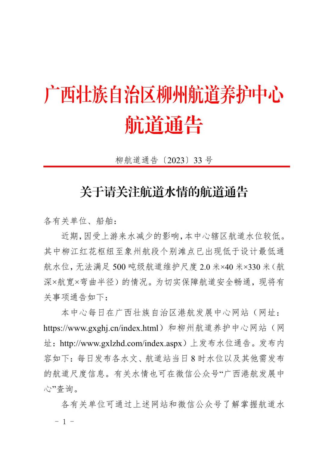 关于请关注航道水情的航道通告