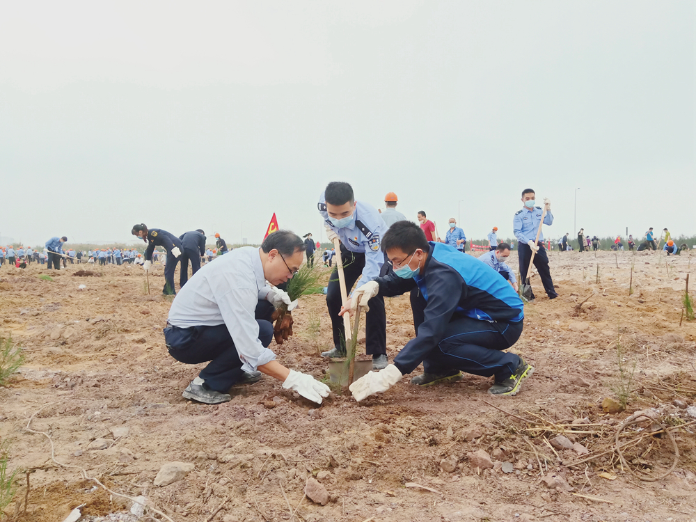 2020年4月18日上午,防城港引航站党支部在李盛乐书记的带领下,携手联创共建单位开展“共植战疫希望树,同奏经济复苏曲”主题植树活动。