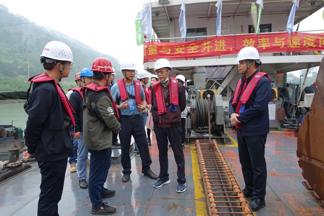 (中心党委副书记、纪委书记韦立强现场调研贵梧3000吨级航道一期工程生态护坡项目推进情况)