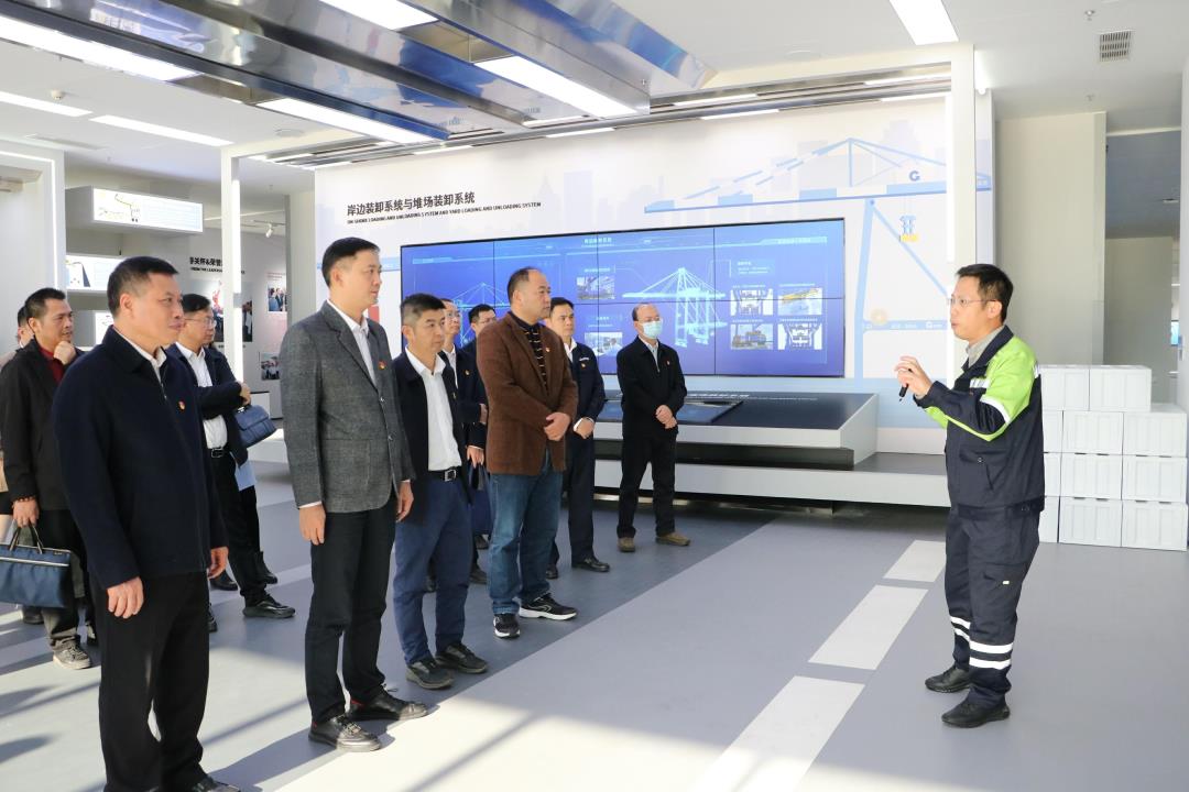 (联建双方参观海铁联运中心站展厅,钦州港自动化码头参观智慧中心展厅)