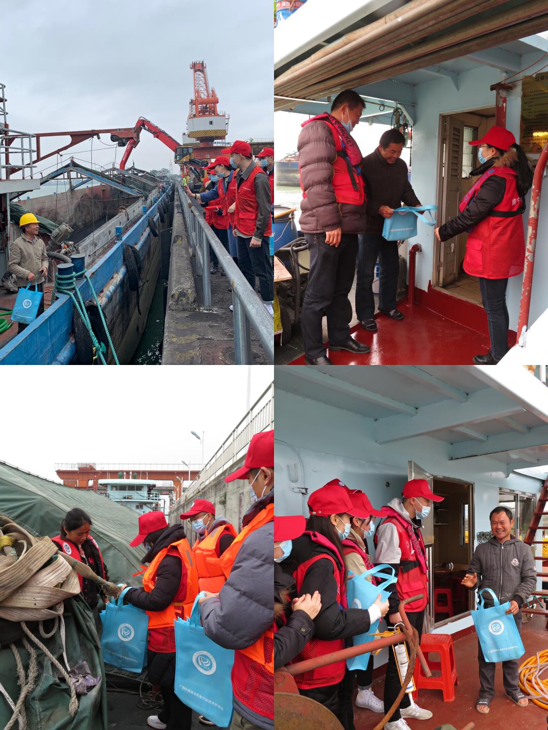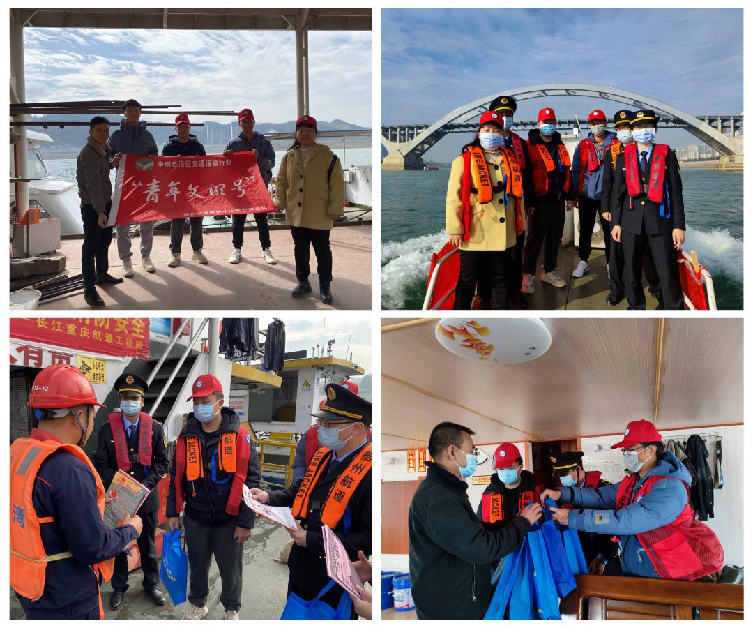 南宁航道养护中心:以党员、团员青年代表组成志愿服务队,在船闸、码头、作业区,向船闸工作人员和船主发放定制暖心春运包,并进行疫情防控、防诈骗、安全知识等科普宣传,为船主答疑解惑,给返乡人送上健康安全保障。航道上的红马甲,温暖了船主们的归乡路。